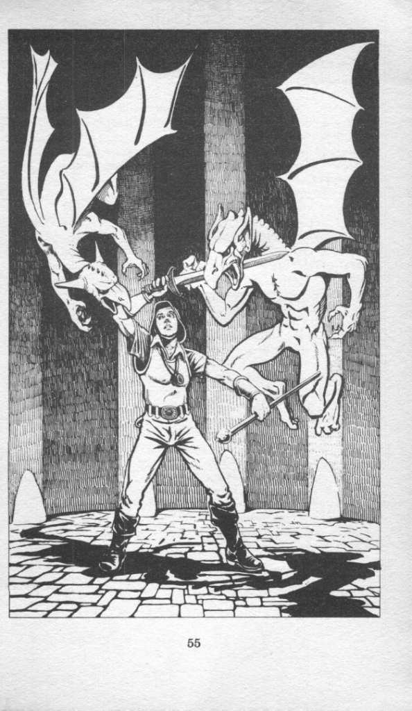 One of the cool little things in this gamebook is the way in which it attempts to adapt the mechanics of the original module to gamebook mode. Instead of using the Tarokka Deck randomization system (which would be too complex for a gamebook and would make little sense without a DM to interpret what it means) you get a system where dice rolls randomize the contents of certain rooms. This rewards exploration so that you can get certain items that will make your final boss fight easier and it also makes the book more replayable because you never know what you will find behind a certain door. Good stuff.