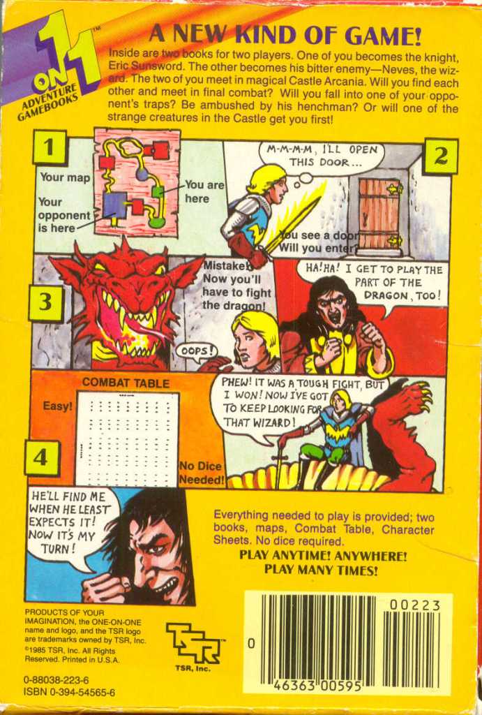 Moving now to these books, these were an interesting concept, and although this volume doesn’t explicitly mention D&D, it was clearly inspired by that game, and later volumes will be openly using AD&D, Dragonlance and so forth logos. The idea here is a boxed set with two little books where you and a friend each take a book and assume a character who will compete with each other until one comes out the winner. An interesting twist on the gamebook concept as we will see!