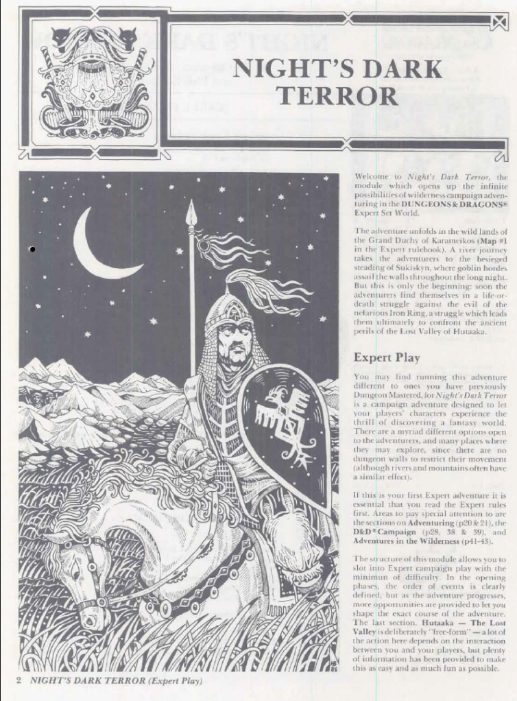 With some great maps, a complex plot involving secret groups going after the party, a bestiary with a bunch of cool new monsters, and a great variety of places to explore, this was pretty good value as an adventure and the uniqueness of it being a didactic bridge between Basic and Expert versions of the game made it singular enough that it would definitely be worth trying out.