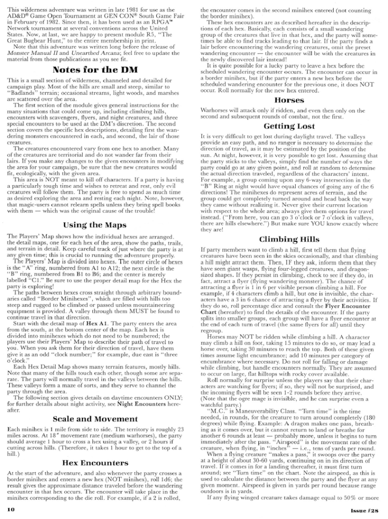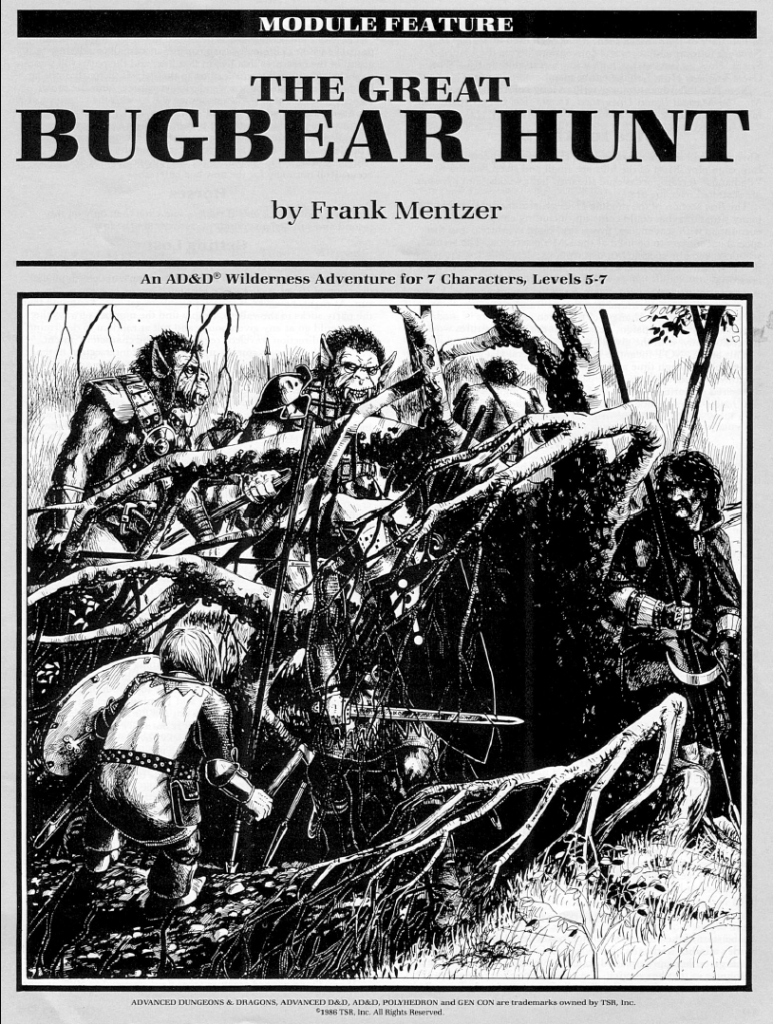 Frank Mentzer – The Great Bugbear Hunt in Polyhedron #28 (March 1986)