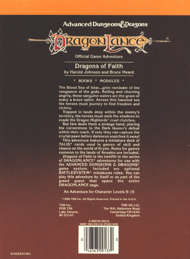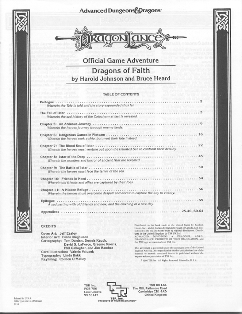 It’s fun to see these synergies going on in the world of D&D releases and it’s only something you really get if you either lived through it or do this kind of chronological run through the releases. So, if your players were avid fans of the setting (and seeing as they’ve played through 10 modules of the series and probably read the massively popular Chronicles novels, they probably were) they would have been pretty well informed about how Istar came to be the underwater city in a sea of red that it is now.