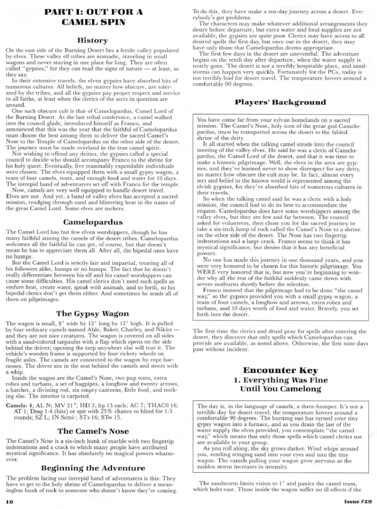 Michael D. Selinker – The Camel’s Nose in Polyhedron #29 (May 1986)