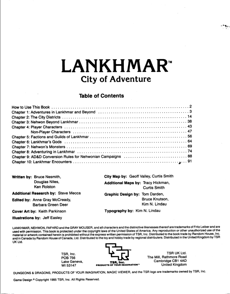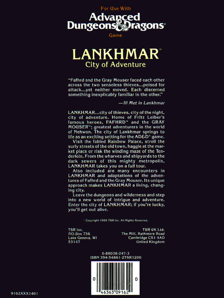 In this blog it is inevitable that sometimes things fall by the wayside and I have to make some posts to cover something I somehow missed, and this was a pretty big one! I have already covered several Lankhmar adventure modules here, but never the Campaign Setting volume that gives information on the city of Lankhmar itself. Well, today we solve that problem.