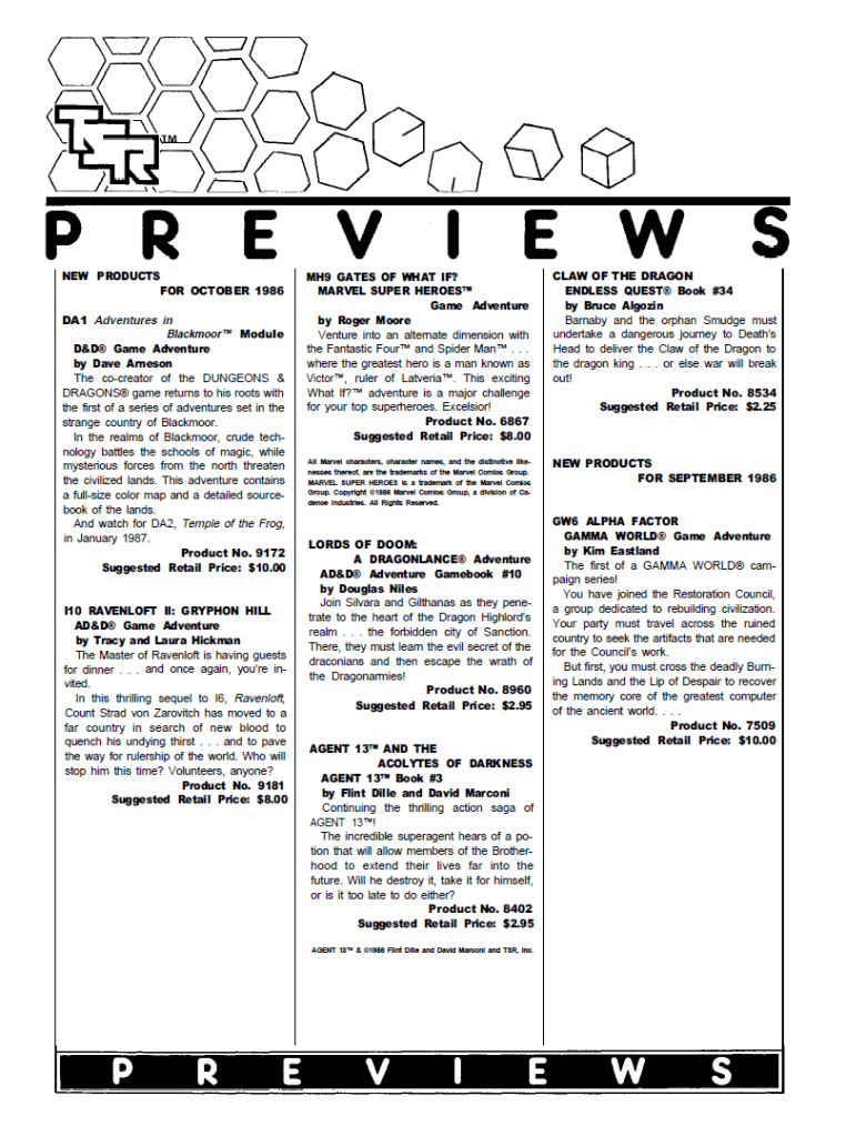 482.1. Advert for Dungeon Magazine and Upcoming Releases by TSR in Dragon #112 (August 1986)