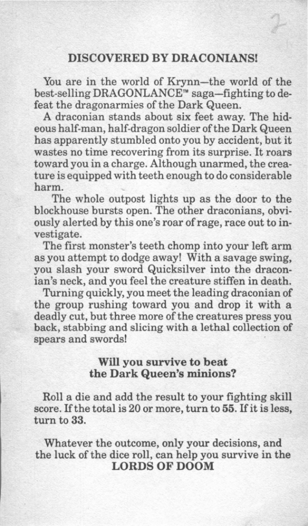 Letting us know what happened to Gilthanas and Silvara when they went their own way during the Dragonlance Chronicles, this fills a small gap in the history of Krynn in the shape of a gamebook. This is of special interest for Dragonlance fans, but unfortunately it is also just an OK gamebook.