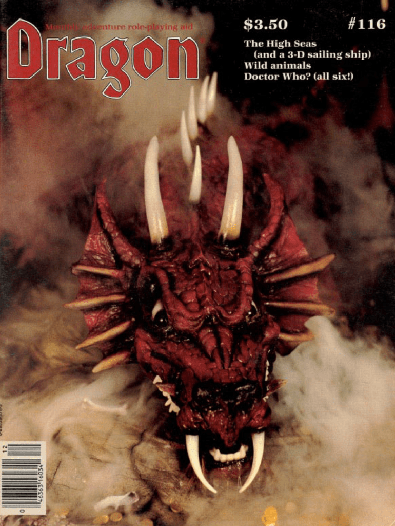 As we quickly approach the end of 1986 there is still time for a couple of modules, another entry in the Endless Quest series and, of course, an issue of Dragon magazine. This time we have an unusual cover, as instead of the usual illustration we get some miniature photography (maybe not so mini, as the inside of the magazine tells us the figure is actually several feet long).