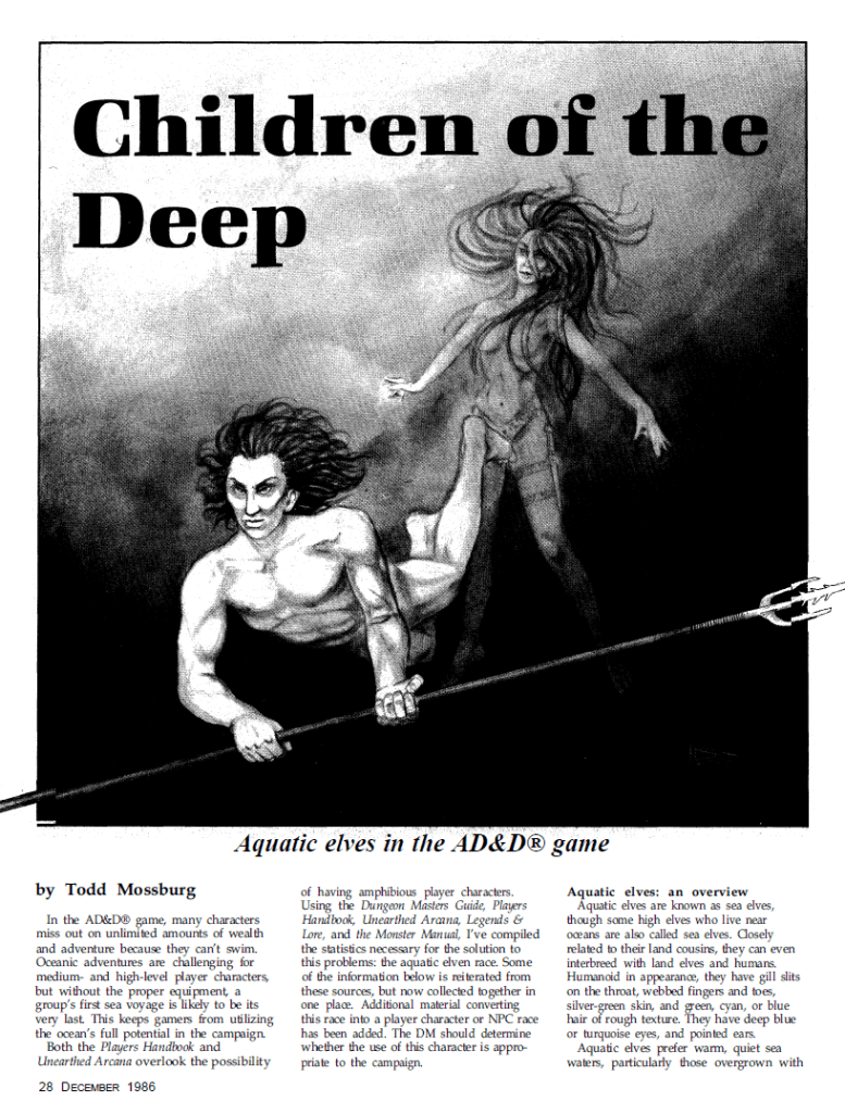 Of course the whole magazine isn’t about sea stuff, and you get an “Ecology of” article on Minotaurs, a teleport gem created by Ed Greenwood, an article on ordinary animals (i.e. not monsters) in TTRPGs, and of course the usual smattering of articles on games other than D&D.
