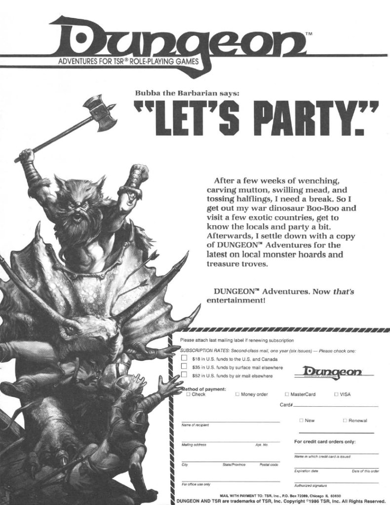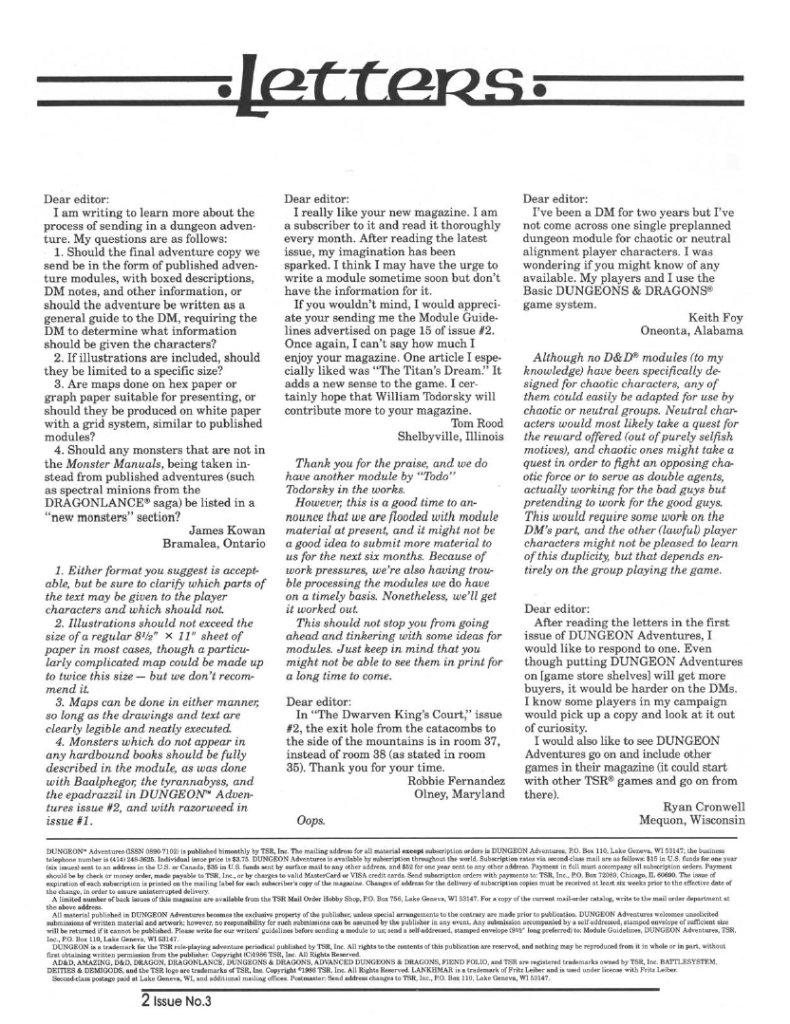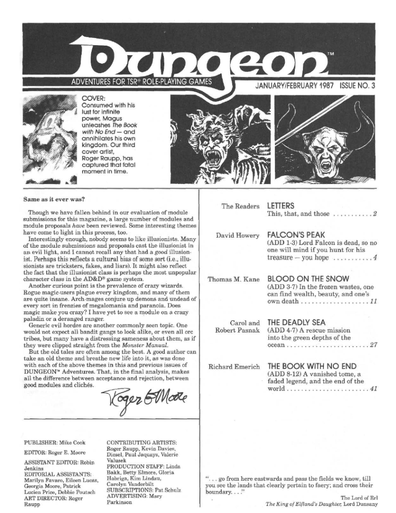 The third issue of Dungeon magazine reinforces the growing centrality of the AD&D version of the game to TSR both as a company, but also to the more hardcore players, those who would go to the trouble of writing out a whole complex scenario for publication.