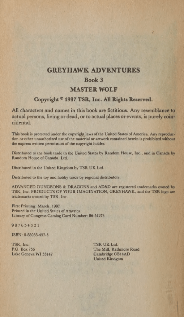 Gone are Gord the Rogue and his risqué adventures and in comes Mika the Wolf Tribe Barbarian-Shaman who gets to fight gnolls and save an ungrateful princess all the while unknowingly going up against one of the most iconic villains in Greyhawk. If I have a criticism of the book it is the fact that it does often feel like this is an adventure which is set in Greyhawk because that is demanded of it. Other than a few place and character mentions little makes this story specifically Greyhawkish, and while some D&D gameplay mechanics do make an appearance here and there they feel more like a hindrance to the story than an integral part of the tale. I would not be surprised (and I don’t know if this is true) if Master Wolf had started out its life as a book independent of D&D which was then repurposed due to the demand for books in this setting by TSR. Still, it’s a fun story, and if you are not expecting a strict adherence to lore canon, a perfectly enjoyable adventure romp.