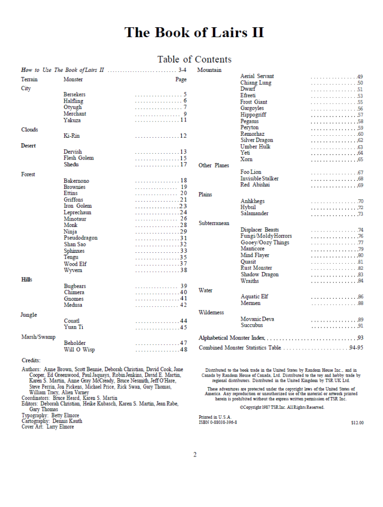 Boasting some twenty different authors this is a sequel to the first book of lairs. The concept is pretty simple, pick a monster and then write a little about what their lairs are like, what adventurers are expected to find there and how DMs can include them in their adventures.