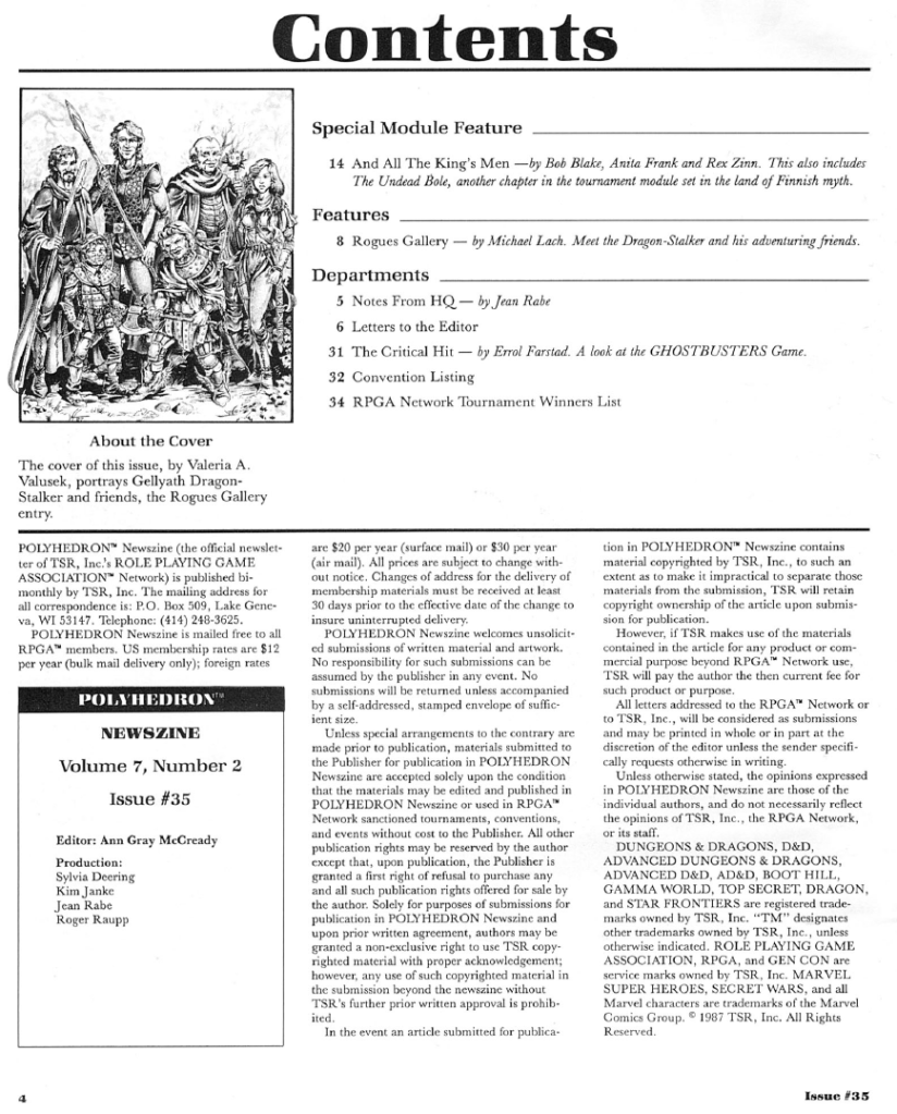 In this 35th issue of the RPGA newsletter we get the usual stuff: reports from tournaments, announcements for conventions and all the stuff that can be of interest to competitive TTRPG players, particularly if they play AD&D.