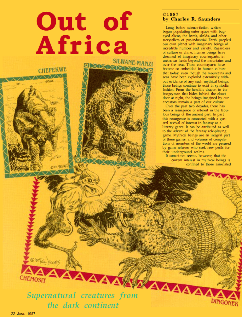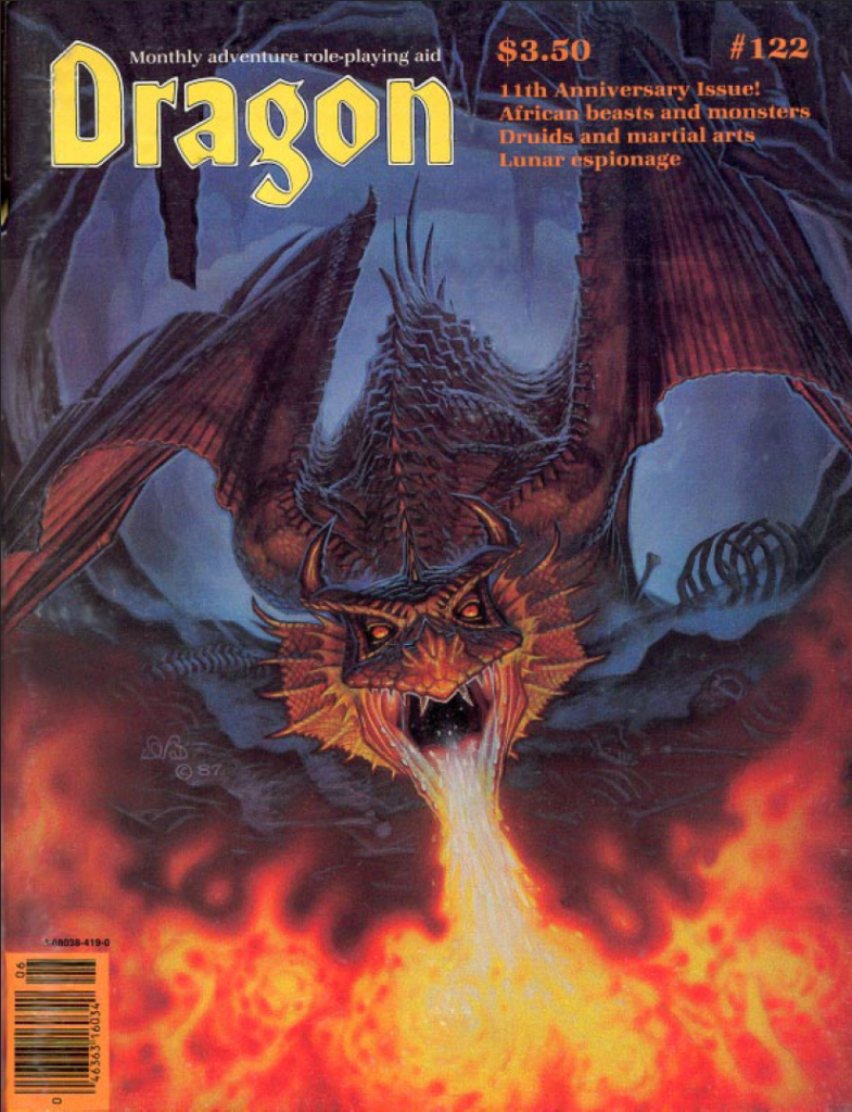 The remainder of the magazine covers the usual stuff, with a couple of articles on Oriental Adventures, one on monsters inspired by African Mythology, as well as new spells for druids. Lastly there’s something which might not look at first sight D&D related, but the review of the Might & Magic computer game gives us a glimpse of what future D&D PC RPGs will look like towards the end of the decade.