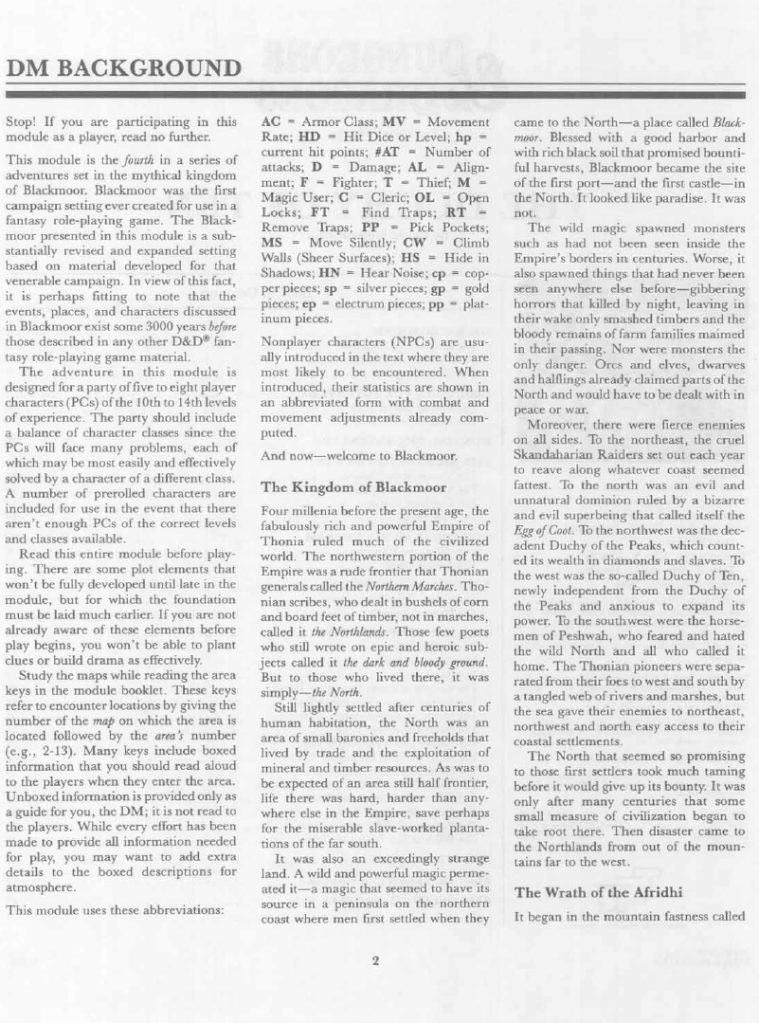 TSR, having let go of many of the old school gamers that developed the game, most notably Gary Gygax himself, was looking to rebrand and relaunch as can be seen from the increasing interest in novel publishing as well as concentrating efforts on big properties such as Dragonlance or the new setting of The Forgotten Realms which had all the bells and whistles. Old settings from people who were put aside from the company, such as Arneson’s Blackmoor or Gygax’s Greyhawk, which TSR couldn’t completely control the rights to, were suddenly old hat.