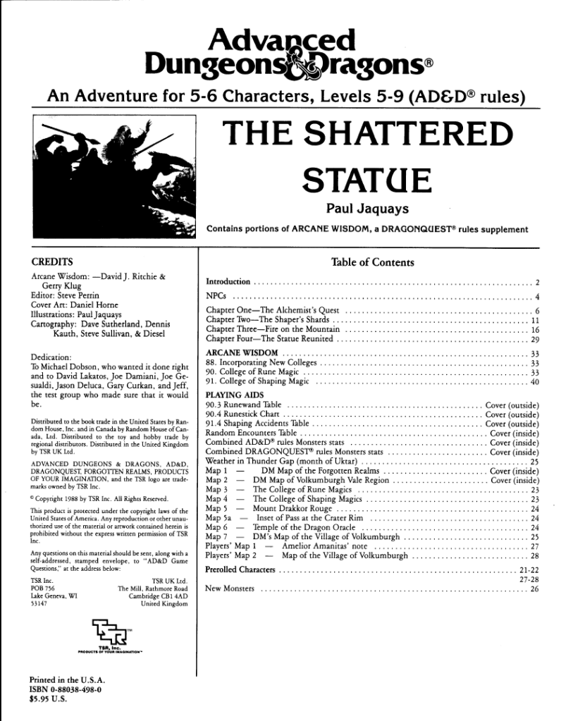 So, by 1987 TSR owns the rights to both AD&D and DragonQuest and come up with the idea of creating what they called “Dual Game System” modules, meaning a module which could be used both with AD&D and DragonQuest, for this they tapped Jennell Jaquays, one of their most brilliant designers, who produced this with the help of David J. Ritchie and Gerry Klug and even produced the great interior illustrations which I will share here tomorrow.