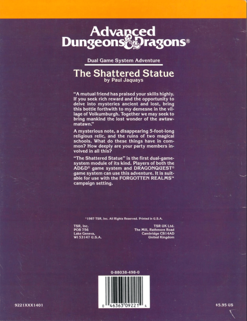 As was usual at this time all things TSR were geared towards promoting the Forgotten Realms setting, and this was no exception. The module description also lets us know that the game is fully compatible with the Forgotten Realms campaign.