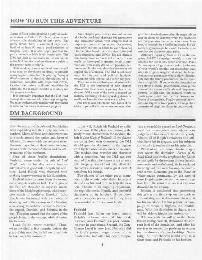 Well, at least someone in the party has to play the inheritor of Fenhold, I don’t imagine you’d have a whole party composed of Rolph-cousins. According to the rules, either you get the character who is the inheritor from the pre-made characters in the module itself, or it’s the highest level fighter with no land-holdings of their own in the party who gets it.