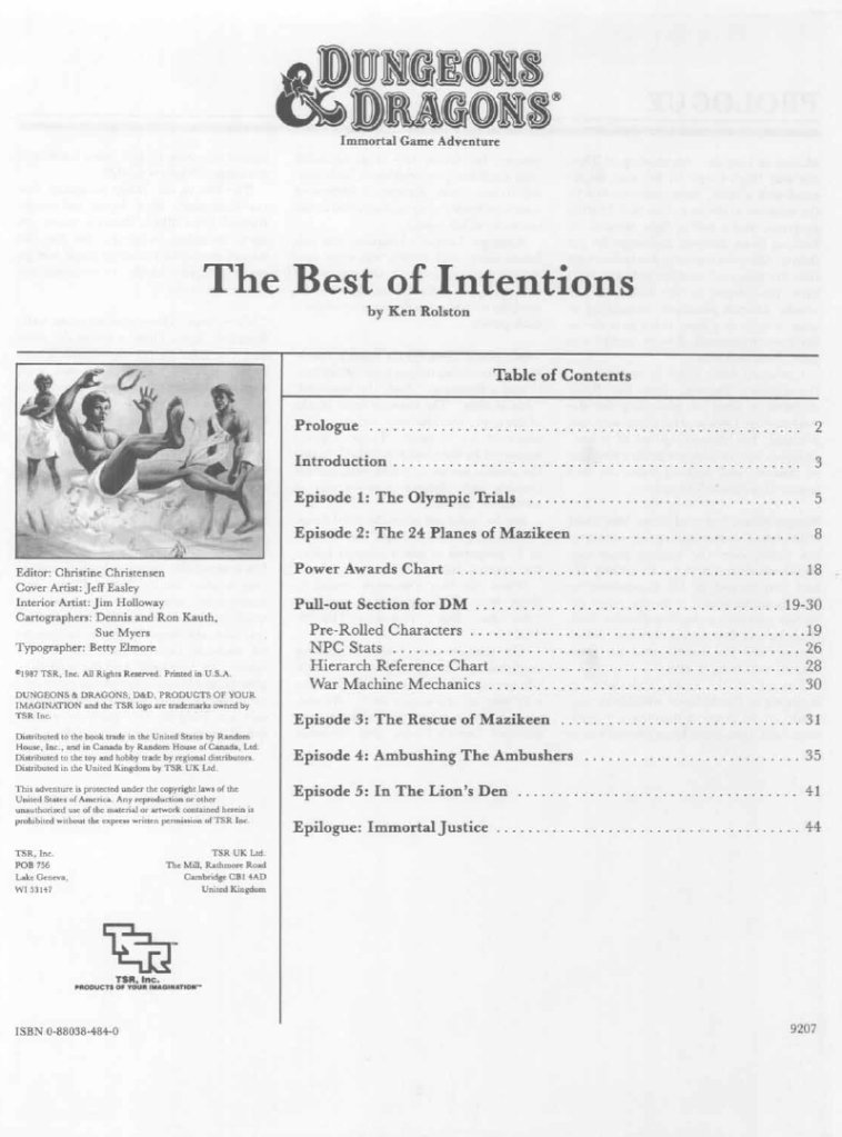 A comedic romp set in the Immortals game system for D&D it is, essentially, a wholly different game than the usual sword & sorcery shenanigans that you get up to in the regular game. In this module you get to try to save a missing Hierarch by doing stuff like playing in the Immortal Olympic Games.