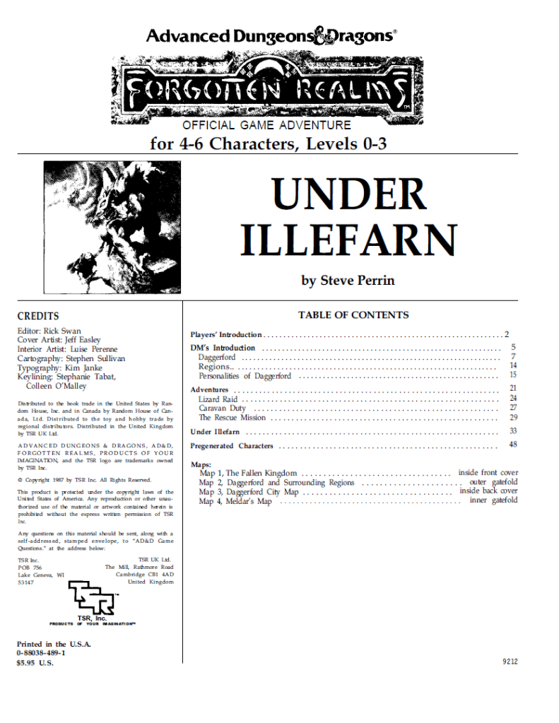 By this time the Campaign Setting was already out (although I forgot to cover it here, I’ll fill that gap in my next post!) as was the Darkwalker on Moonshae Novel, but with this module we inaugurate a long period in which Forgotten Realms will become the default setting for AD&D and then D&D. All the way to 2024, when the revised fifth edition Dungeon Master manual seemed to imply Greyhawk was the new default setting. However, I’m sure that most adventures published in the next few years will still be set in the Forgotten Realms, the place where the Drizzt novels take place, where Baldur’s Gate is situated and the recentish movie was set. There’s no way WotC will let that long buildup of intellectual property slip through their fingers.