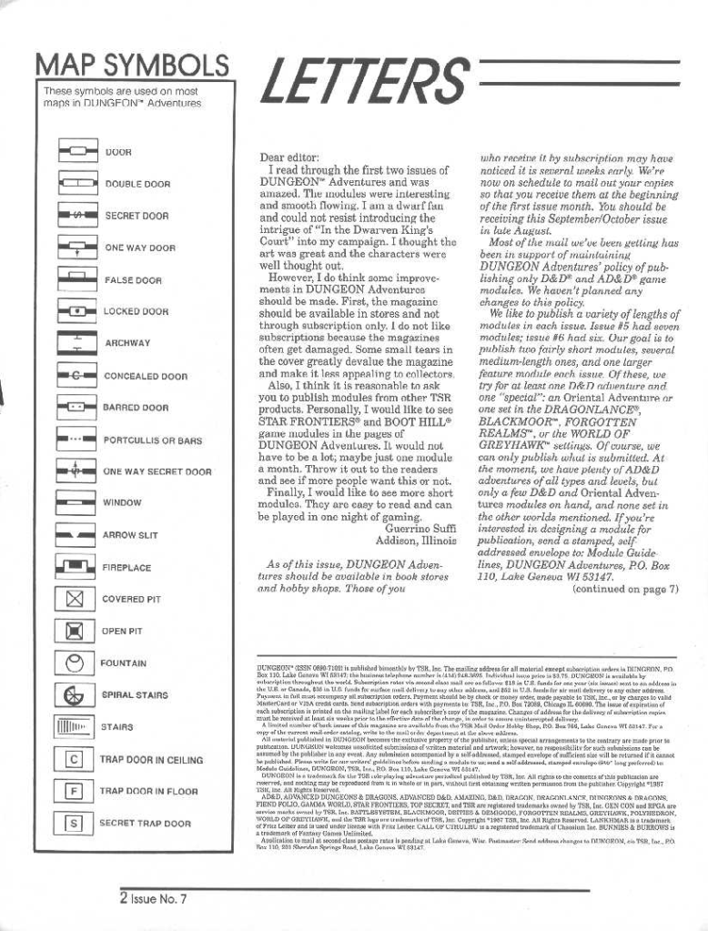In the first year the magazine was heavily biased towards AD&D adventure modules, in this issue the same happens, but the main event is the continuation of the Tortles of the Purple Sage adventure, for D&D, and we also get a module for use with Oriental Adventures (OA) AD&D.