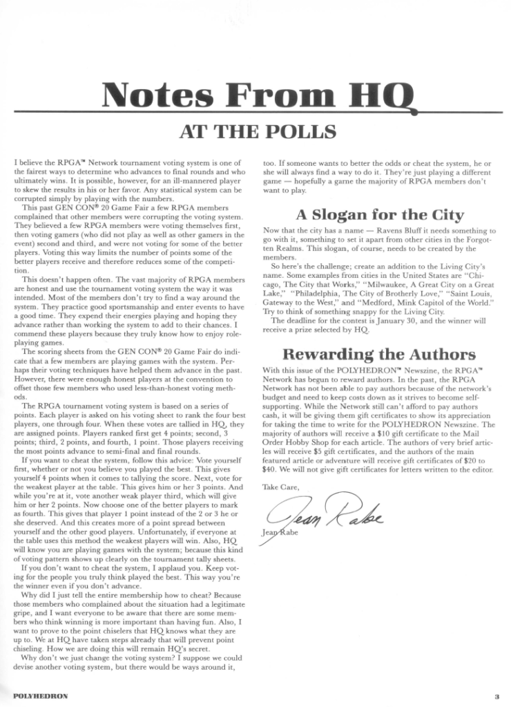 As usual, every two months, we get the RPGA magazine, Polyhedron, aimed at the competitive side of TTRPGs, but with some good extra articles on rules and sundry game optimizations.