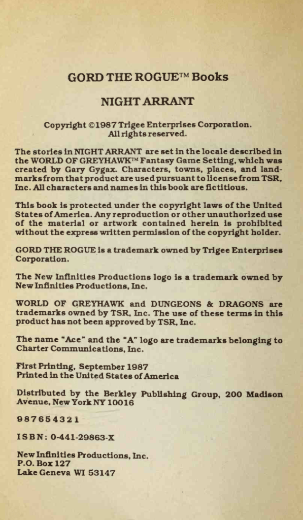 Sorry I’ve been taking so long in updating this project, but I did get a bit stuck reading through Night Arrant, something which might happen as I hit some duller or harder going novel as we progress through the history of D&D.